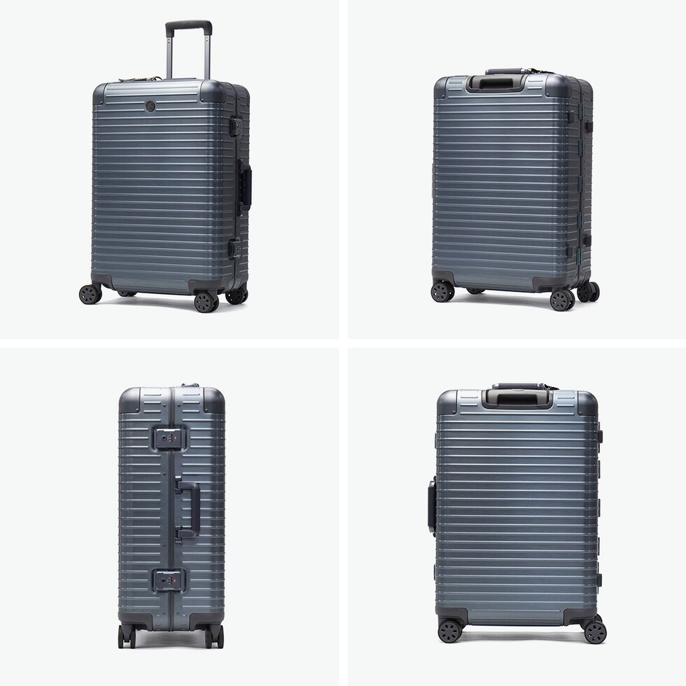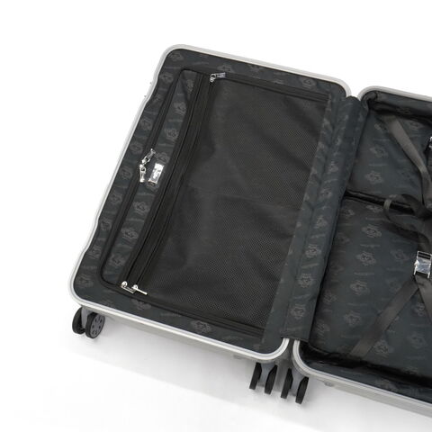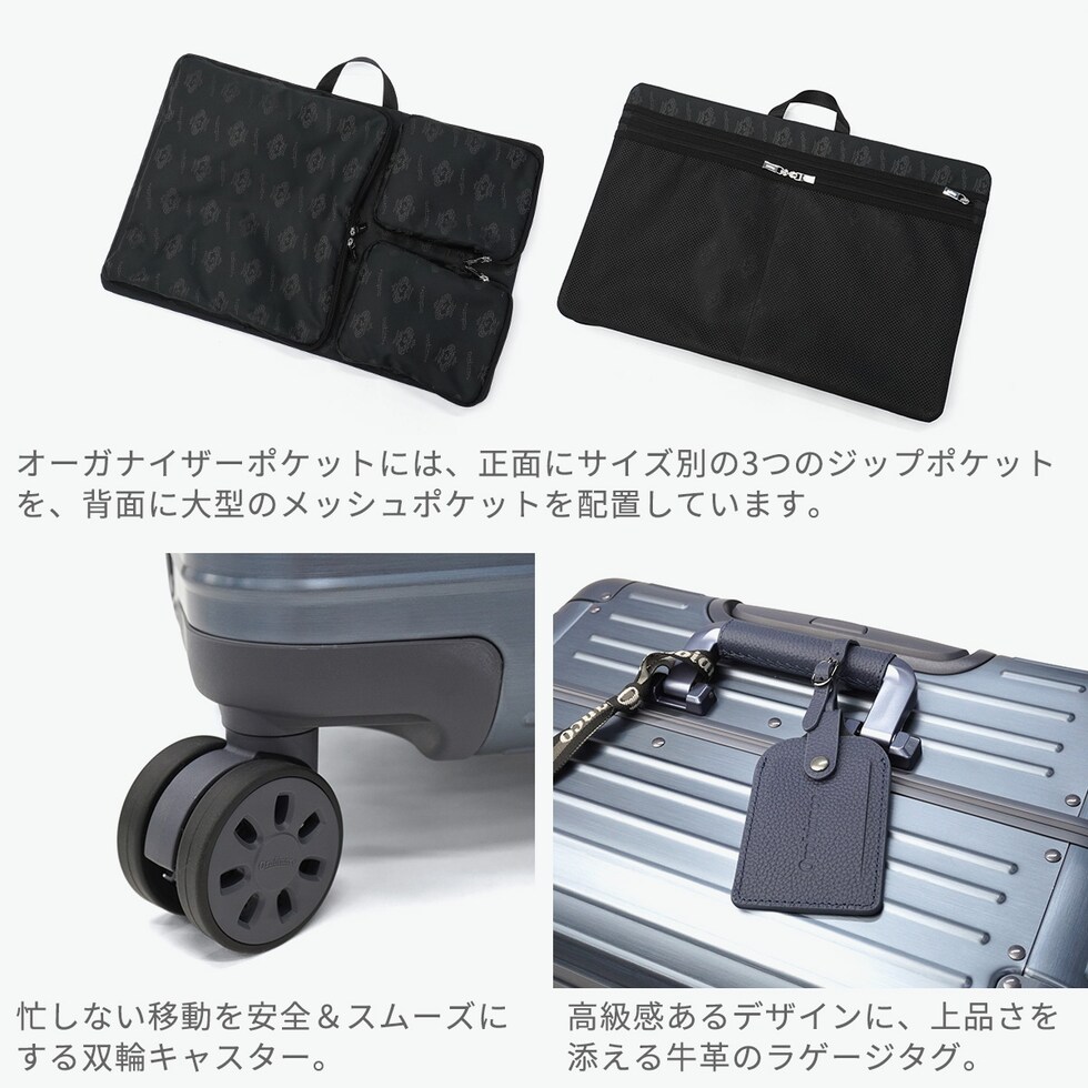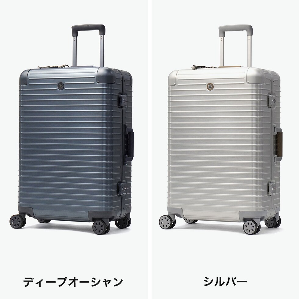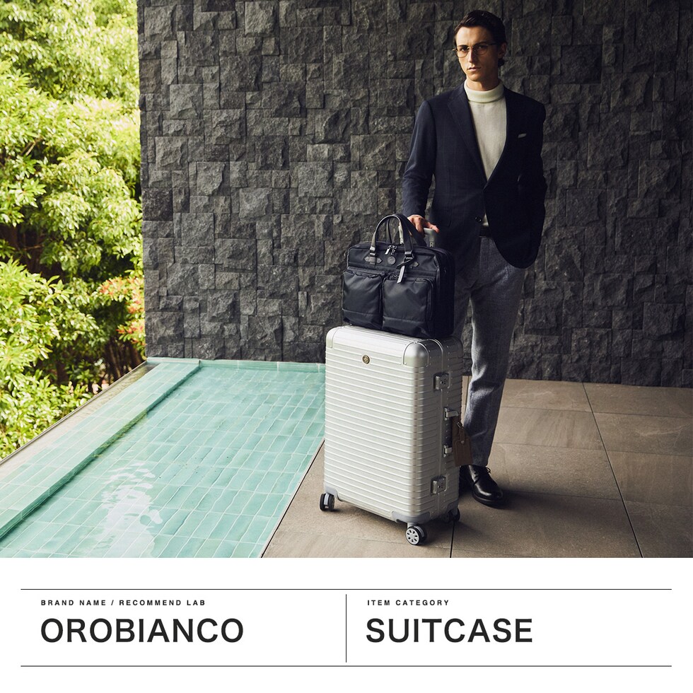 アルミ合金製ラゲージ 「Orobianco」初のアルミ合金製ラゲージ『MOVENZA/モヴェンツァ』。こちらは、71L容量のスーツケースです。ヘアライン加工された高級感のあるアルミボディに、手仕事が光るレザーハンドルが特徴。取り外し可能な仕切りを付属するなど機能的な設計。洗練されたラグジュアリー感と上質な存在感を放つ逸品に仕上がっています。 |