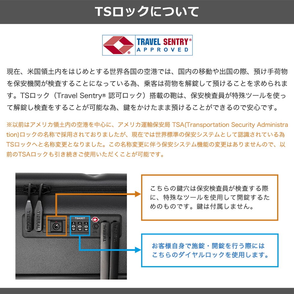【正規品1年保証】 ティエラル スーツケース Lサイズ TIERRAL キャリーケース フロントオープン 拡張 軽量 L キャスター 車輪 取り外し可能 ストッパー TSロック 101L 109L 10泊 11泊 TORERU 3.0 TTRR3-003