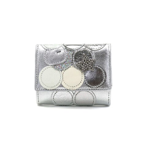 色んな表情のドット柄をパッチワークした大人気シリーズ『新マルチドット』の三つ折り財布。多彩なドット柄の中にさりげなく混じった、輝くストーンで飾られた星と、猫ちゃんがとってもキュート。手の平に収まるくらいコンパクトなサイズ感で、さらに可愛さがアップしたミニ財布です♪