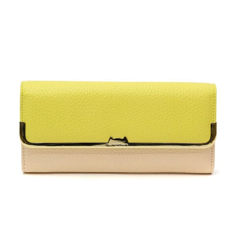 3色のカラーコンビネーションがお洒落で大人可愛い「シュリンクコンビ」シリーズのかぶせタイプの長財布。シボのあるシュリンクレザーとゴールドの口金が上品さを漂わせながらも、ネコちゃんがさりげなく顔を出すキュートなワンポイントも忘れないのがツモリチサトらしい仕上がりです。