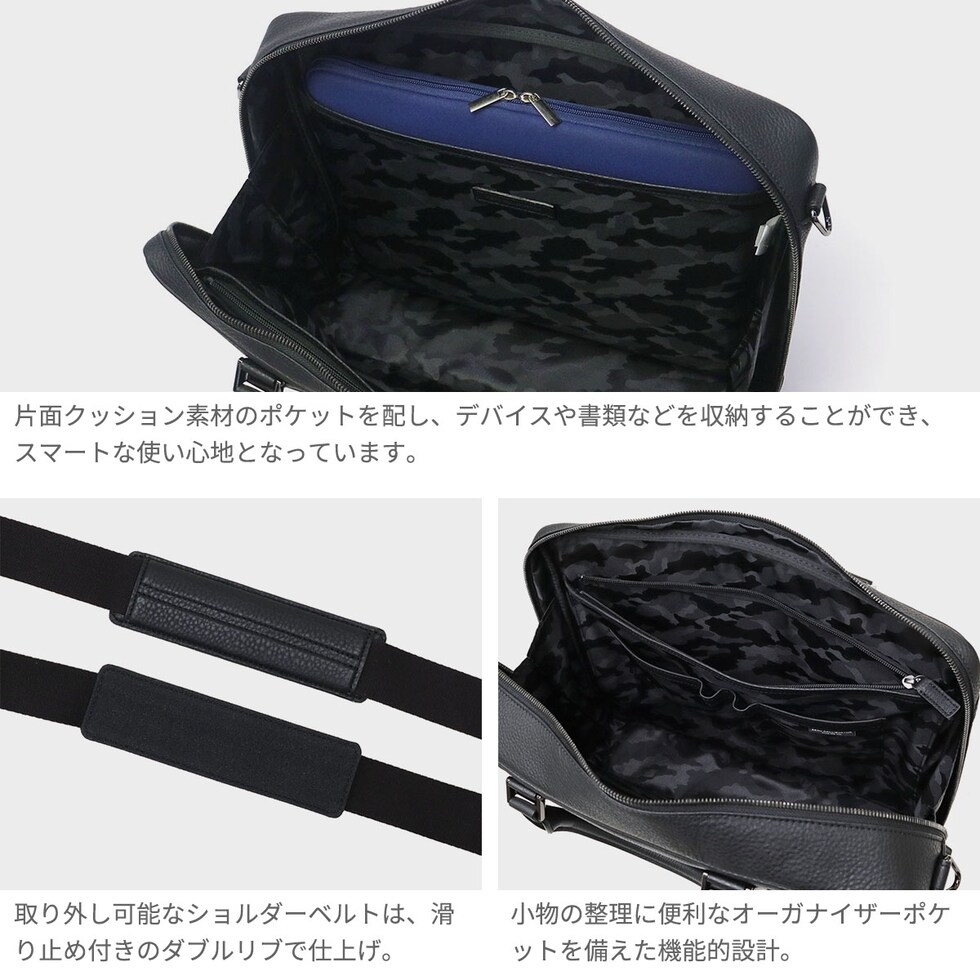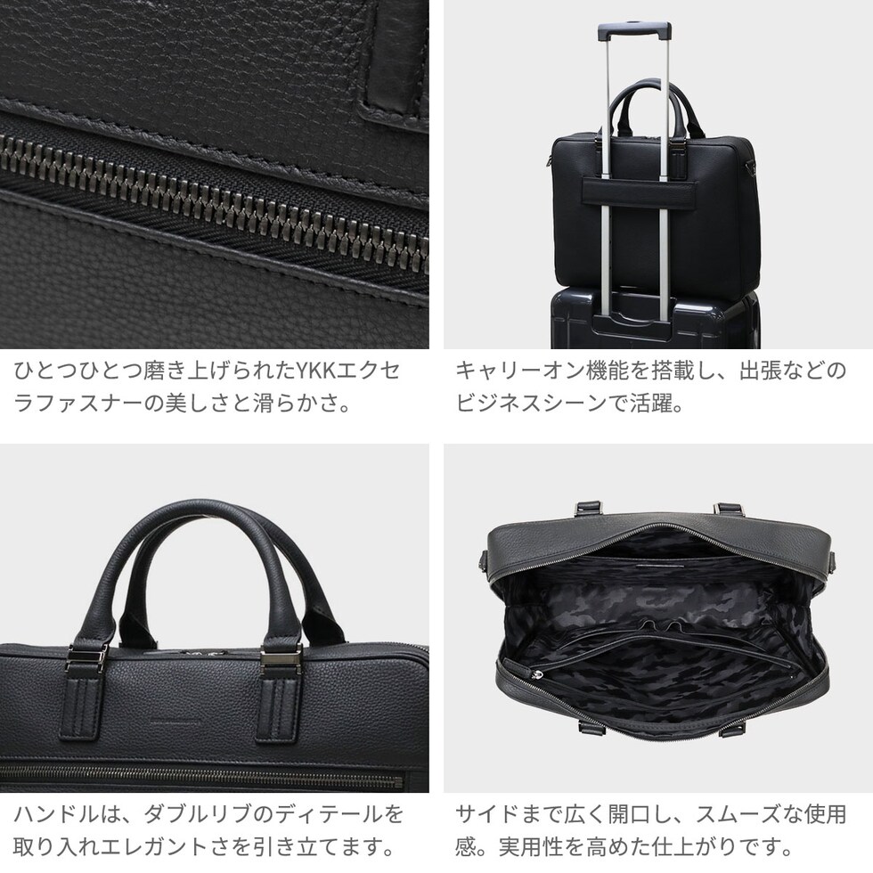 | 上質レザーの品格 機能美が際立つ相棒 シュリンクレザーの上質感と機能性を融合した、『MC COLLECTION』の2WAYビジネスバッグ。B4対応の収納力、自立設計、底鋲付きで使いやすさ抜群。キャリーオン機能付きで出張も快適に。シンプルなデザインはオフィスからカジュアルまで幅広く対応します。 |