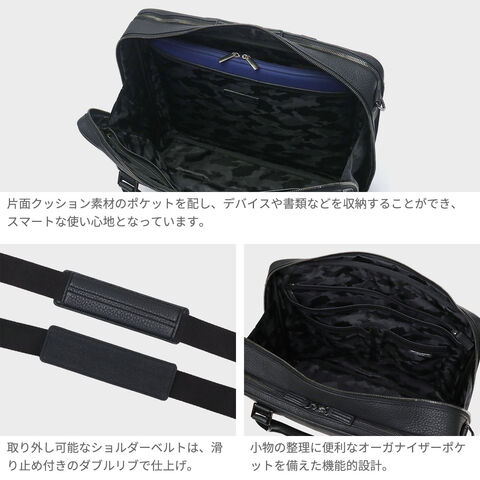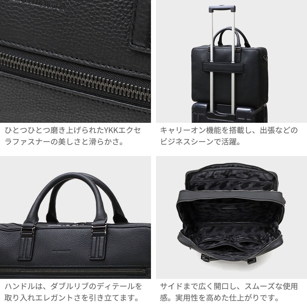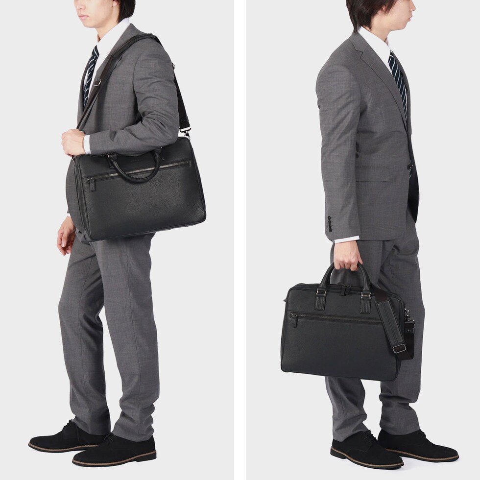 | シンプルながらも 洗練されたデザイン シュリンクレザーの上質感と機能性を融合した『MC COLLECTION』の2層式2WAYブリーフケース。本革の上品なデザインと収納力を備えた機能美が魅力です。キャリーオンやショルダー使いも可能で、通勤や出張をスマートに演出します。 |
