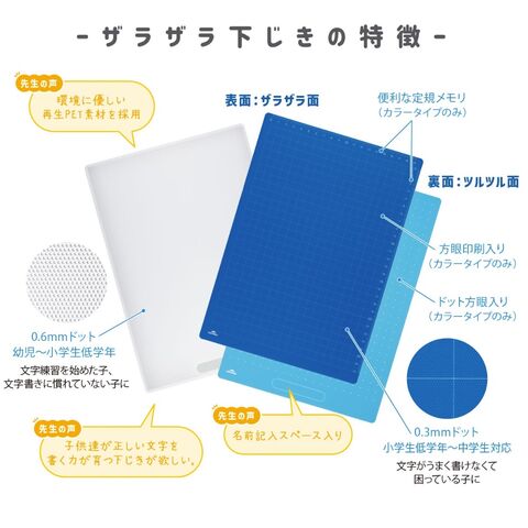 下じき表面に施した細かいドット加工が、ザラザラした感触を生み出します。