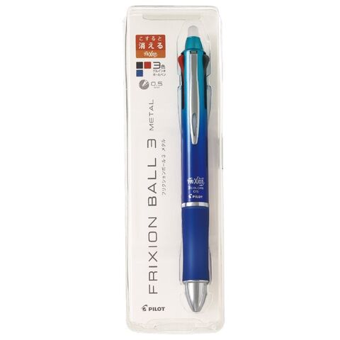 「フリクションボール3」は、1本で3色を使い分けでき、何度でも書き消し可能な利便性の高い3色ボールペンです。