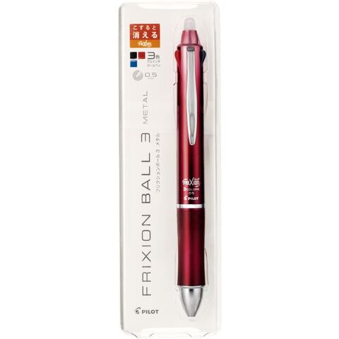 「フリクションボール3」は、1本で3色を使い分けでき、何度でも書き消し可能な利便性の高い3色ボールペンです。