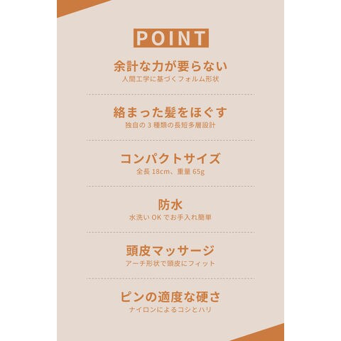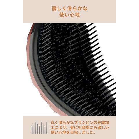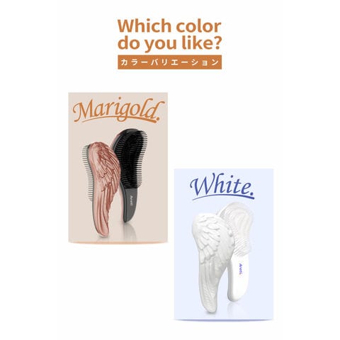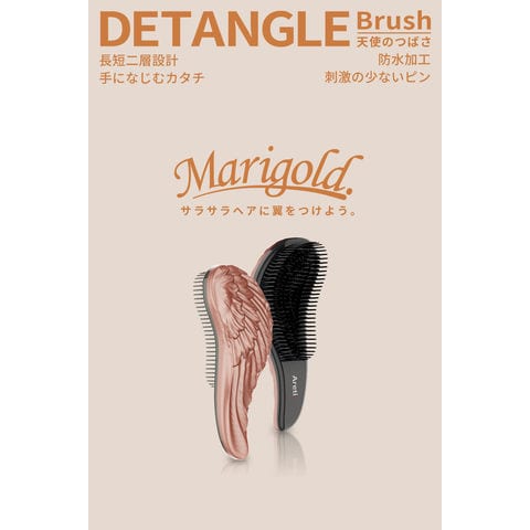 「マリーゴールド」カラーの天使のつばさデザインヘアブラシ。聖母マリアの黄金の花にちなんで名付けられ、優雅なフォルムが髪を優しく包み込みます。人間工学に基づいた形状で、余計な力を使わず、髪はまるで天使のつばさに乗って風を切るようにサラサラ・艶やかに。短多層設計で絡み毛もすっと解消。防水仕様なのでお風呂場でも使え、シャンプー前の汚れ落としや水洗いが簡単。丸いナイロンピンが頭皮を優しくマッサージし、血行促進で健やかな髪へ。