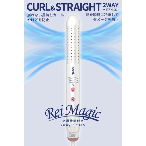 “ ヘアアイロン は アレティ ” 2way 24mm 送風機能付き ストレート カール セラミックコーティング 360度回転コード エアーアイロン 冷マジック ReiMagic Areti-i2686WH