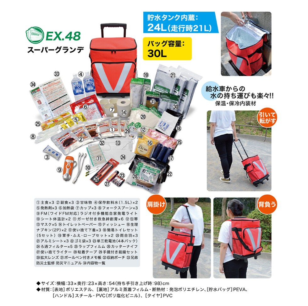 EX.48 防災ローリングバッグ スーパーグランデ防災セット 災害 地震 洪水 台風 防災用品 避難袋 持出袋 災害グッズ 防災用品セット 非常食 保存水
