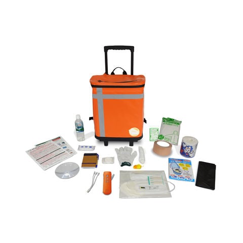 ■ すっきりしたデザイン・丈夫で破れにくいターポリン素材採用。ご家庭だけでなく、オフィスや学校にも設置しやすく、場所を取りません。背負う・引いて転がす・手持する、3通りの運び方が可能ですから、高齢者や女性等、年齢を問わず、誰でもすぐに持出せ、楽に運べます。