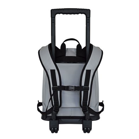 ■ キャスター付ローリングバッグは、①密閉防水で「浮き具」(ライフジャケットL1相当の浮力)になり、急増する津波・洪水等でも浮いて命を守れます ②キャスターとバッグは分離可能、バッグを背負い、キャスターで重量物(耐荷重:約25kg)が運べ、長期避難生活でも便利。