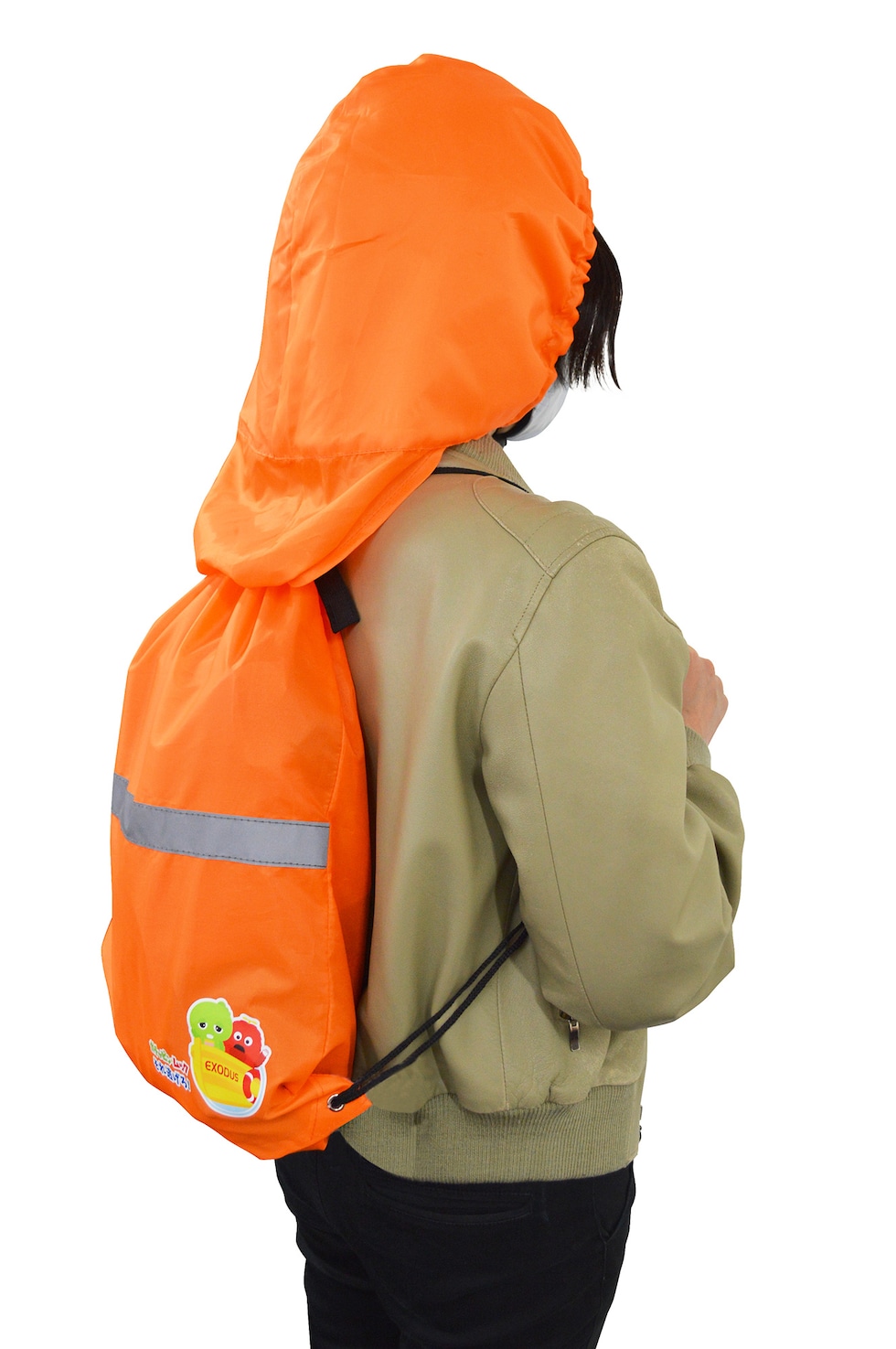 ● バックパックは、 “防風・防塵”中綿入りフード、夜間の視認に安全な