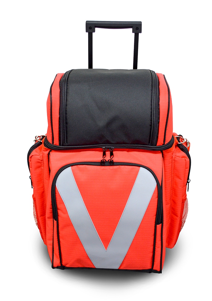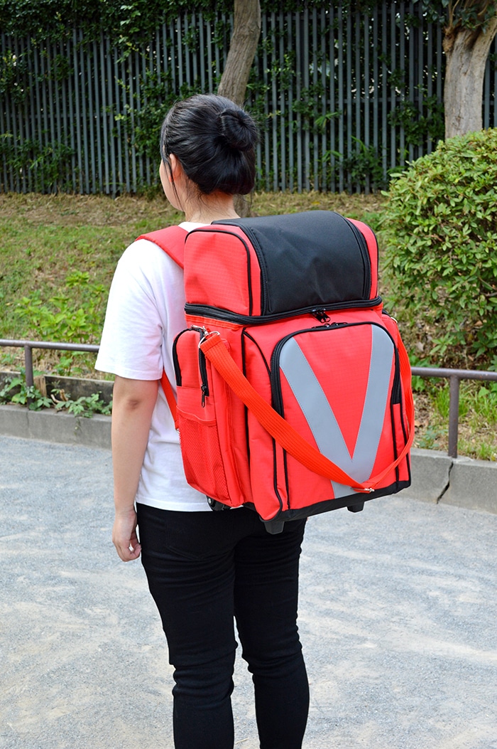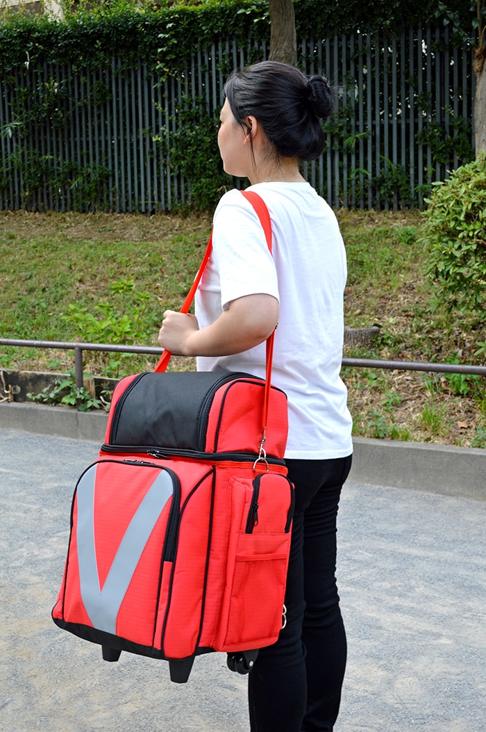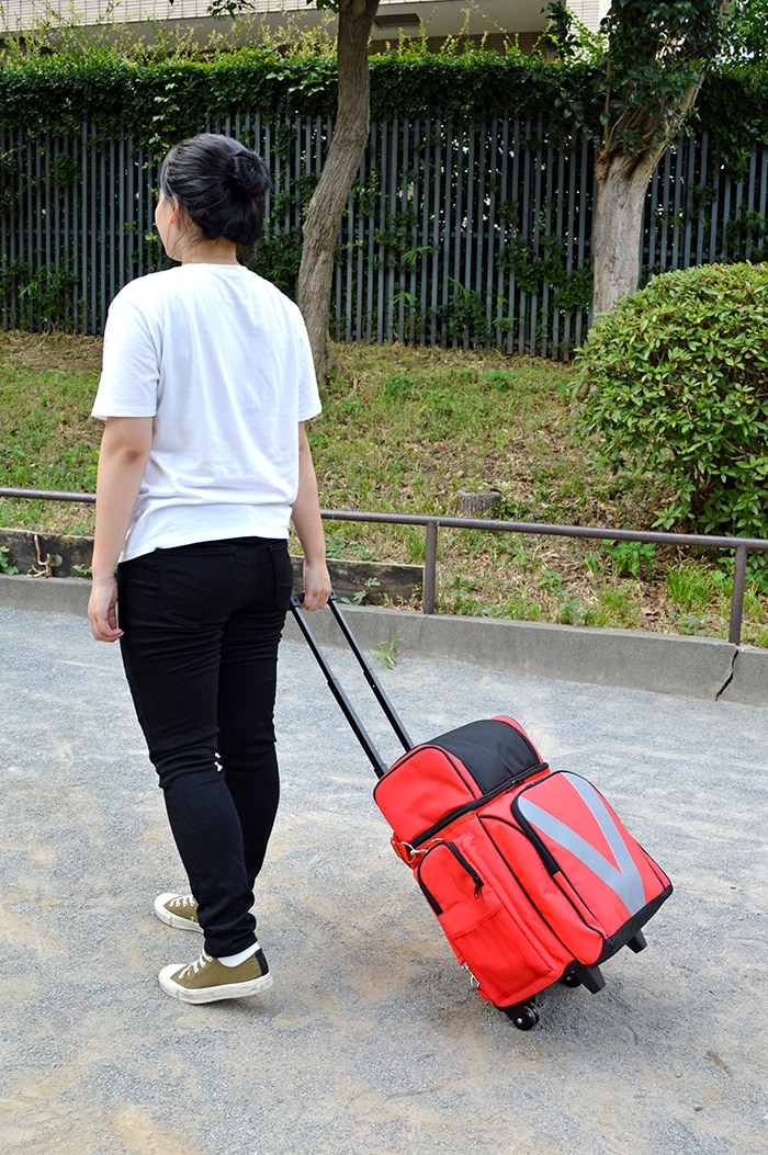 ● 緊急時に持ち出しやすく、災害時にあると便利なアイテムが充実したローリングバッグ。さらに、肩かけ、背負う事もでき、様々な状況にも対処。