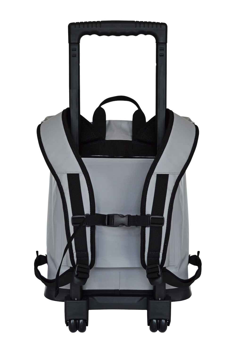 ■ キャスター付ローリングバッグは、①密閉防水で「浮き具」(ライフジャケットL1相当の浮力)になり、急増する津波・洪水等でも浮いて命を守れます ②キャスターとバッグは分離可能、バッグを背負い、キャスターで重量物(耐荷重:約25kg)が運べ、長期避難生活でも便利。