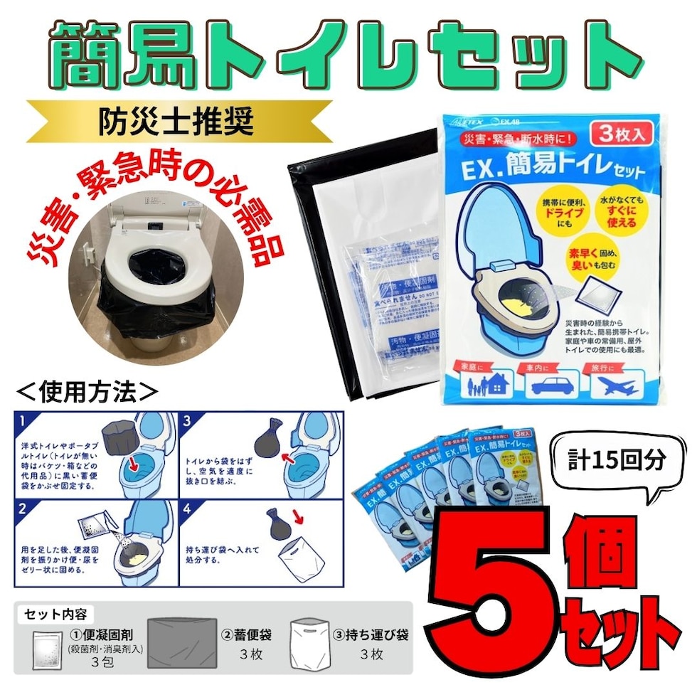 凝固剤・持ち運び袋・蓄便袋 各3回分 ×5セット