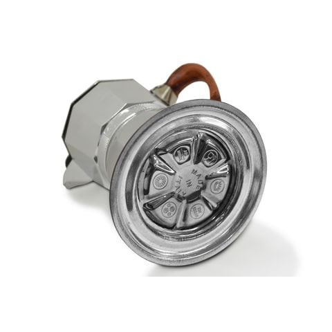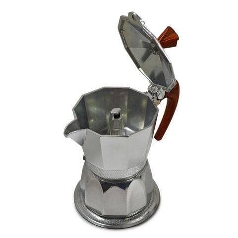 直火で加熱すると、本体下部タンクの水が沸騰、水蒸気が発生、その圧力により下部タンクの沸騰湯が上部ポットへ押し上げられ、中央部のコーヒーフィルターでろ過され、美味しいエスプレッソが抽出されます。