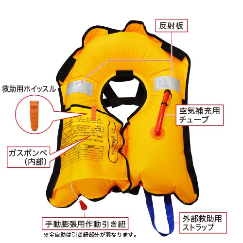 EX.半自動(手動式)膨張救命胴衣 マリンレジャー ライフジャケット NSI-ILJ-M