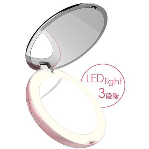 EXELUX モバイルバッテリー&LEDライト付コンパクトミラー OUMC-PK