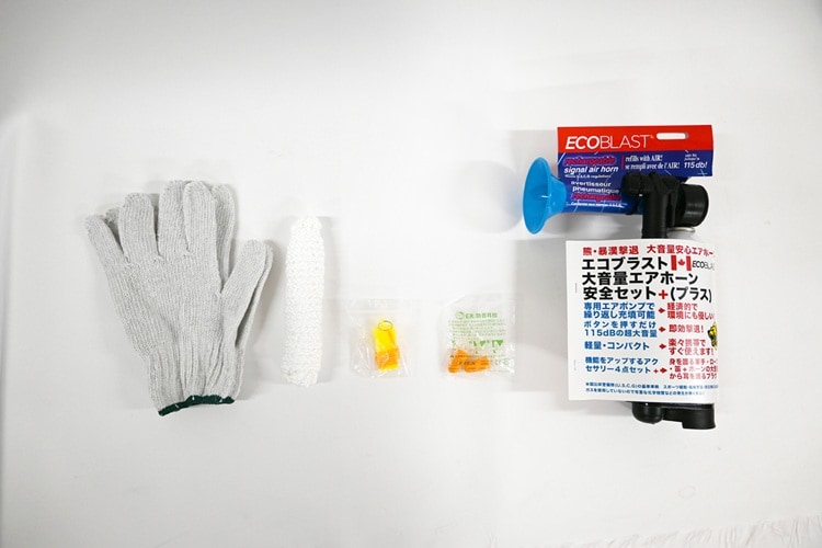 エアホーン+軍手、笛、ロープ、耳栓付き