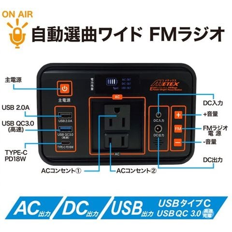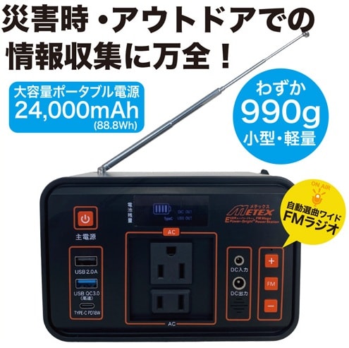 大ヒットモデル、メガパワーステーションに自動選局ワイドFMラジオ機能を追加、災害時・アウトドアでの情報収集に万全!
