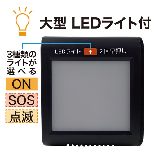 ●大型LEDライトは3モード切替で明るく、停電時でも安心、アウトドアにも便利