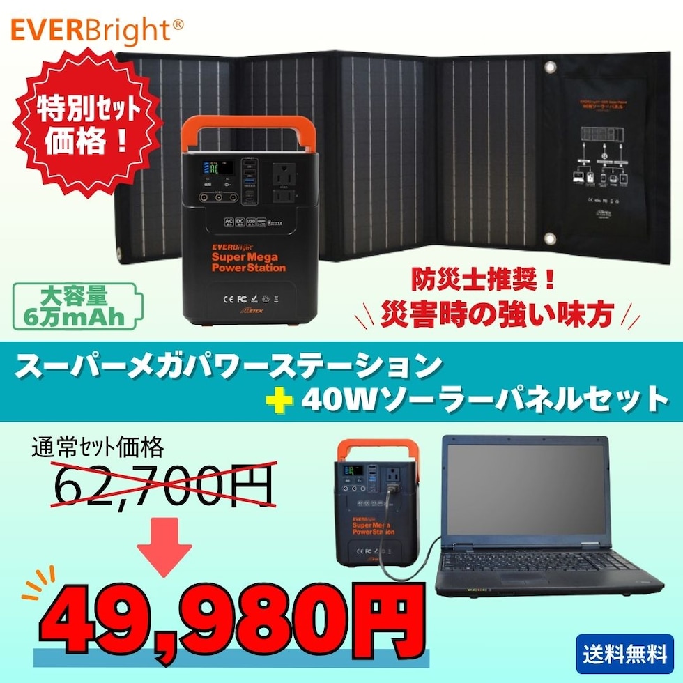 スーパーメガパワーステーションと40Wソーラーパネルがセットでお得に!