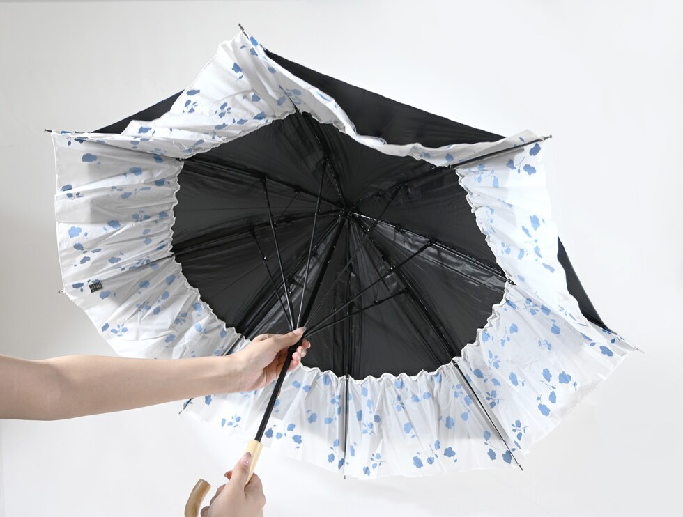 トランスフォーム傘 花柄ネイビー/ホワイト 晴雨兼用 折りたたみ傘 SUG-TFF-NVW
