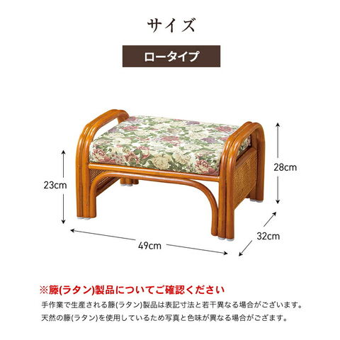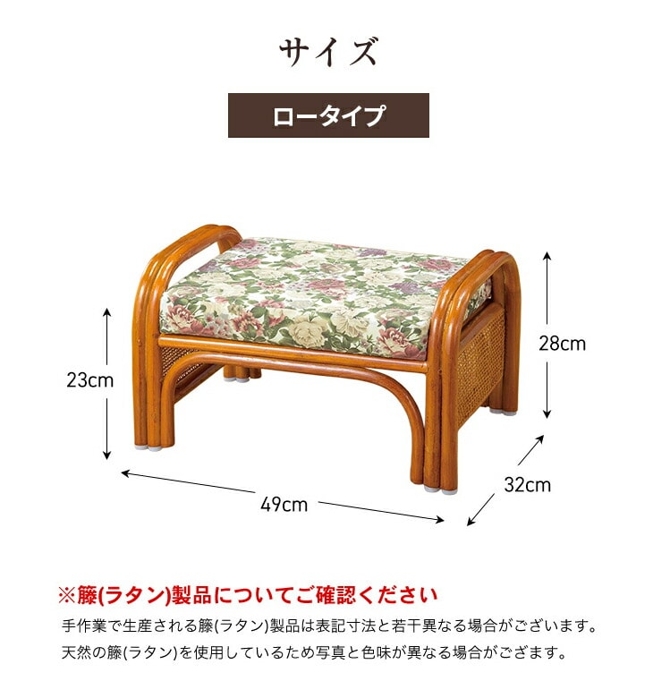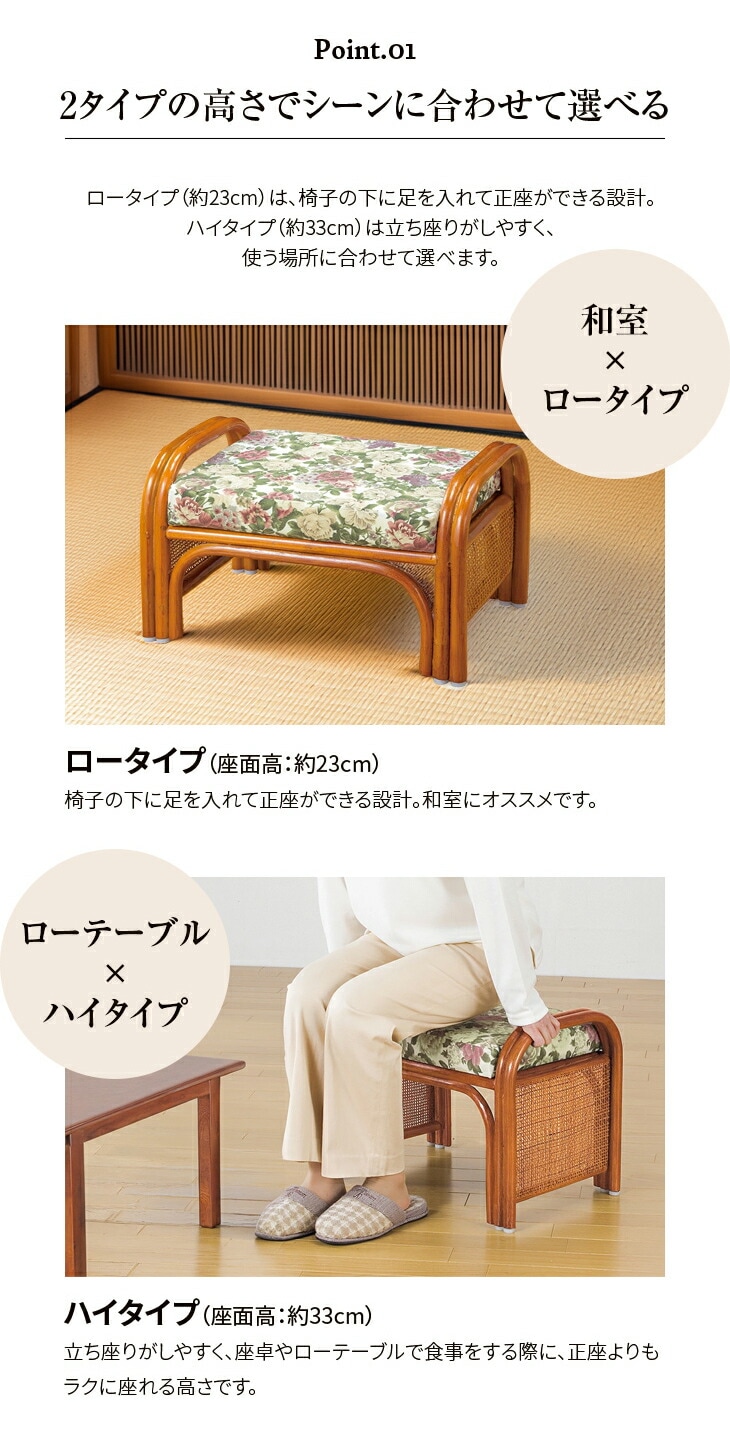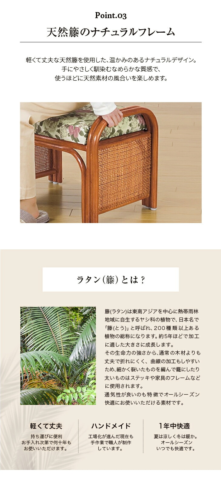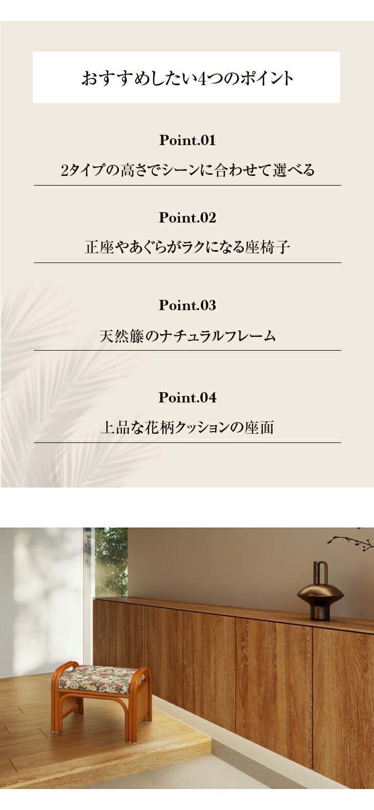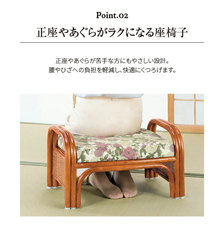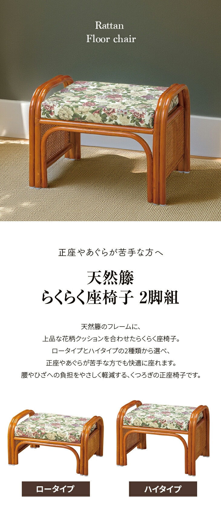天然籐らくらく座椅子 ロータイプ2脚組 正座椅子 正座 椅子 正座サポート オットマン ラタン 籐 花柄 座面クッション入り 高齢者 法事 和室 玄関