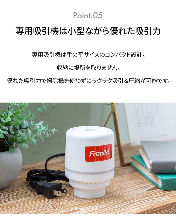 ●素材/吸引機:PP、圧縮袋:PA・PE