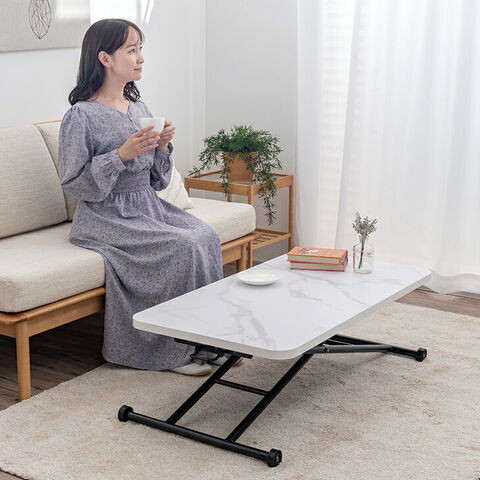 昇降テーブル おしゃれ 折りたたみ 小さめ 天板 55×100cm リフティングテーブル センターテーブル ローテーブル ハイテーブル 高さ調節 昇降式 キャスター付き 大理石調 木目調 完成品