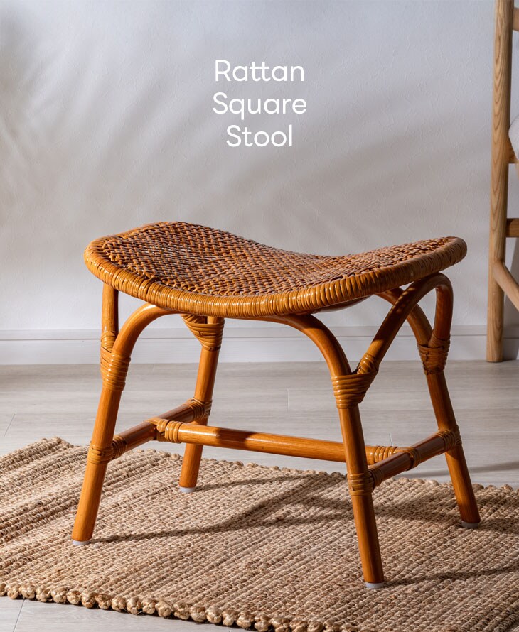 軽くて丈夫、どこでも使える。天然素材の風合いを楽しむ、おしゃれなラタンスツール。「ちょっと腰掛けたいけど、場所を取る椅子は置きたくない…」「玄関で靴を履くときに便利なスツールがあれば…」「お部屋に温かみのあるおしゃれな家具をプラスしたい!」そんなあなたにおすすめ!天然ラタンの風合いを活かした、軽くておしゃれなスクエアスツールが登場です!
