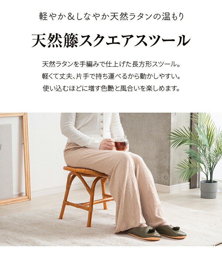 天然籐スクエアスツール ラタン スツール 椅子 チェア イス ラタン 籐 天然籐 天然木 スクエア 長方形 玄関 ベッドサイド 腰掛け 軽い 軽量 おしゃれ ミニ 小さい コンパクト 来客用 カフェ風 一人暮らし 模様替え アジアン ナチュラル インテリア