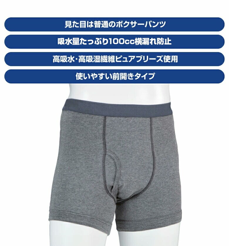 3Lサイズ ファミラ さわやか安心ボクサーパンツ 2色7枚組 100cc 大吸収用タイプ グレー4枚+紺3枚 抗菌 消臭 防臭 失禁パンツ 吸水パット付き 軽失禁 ボクサーパンツ 前開きタイプ