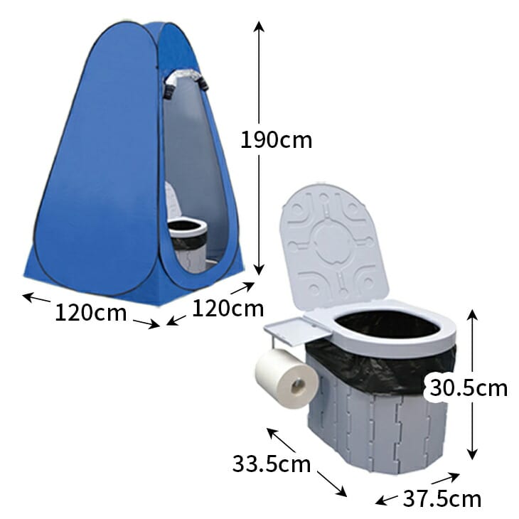 ●素材/(テント)ポリエステル・スチール、(トイレ)ABS、凝固剤:高分子ポリマー