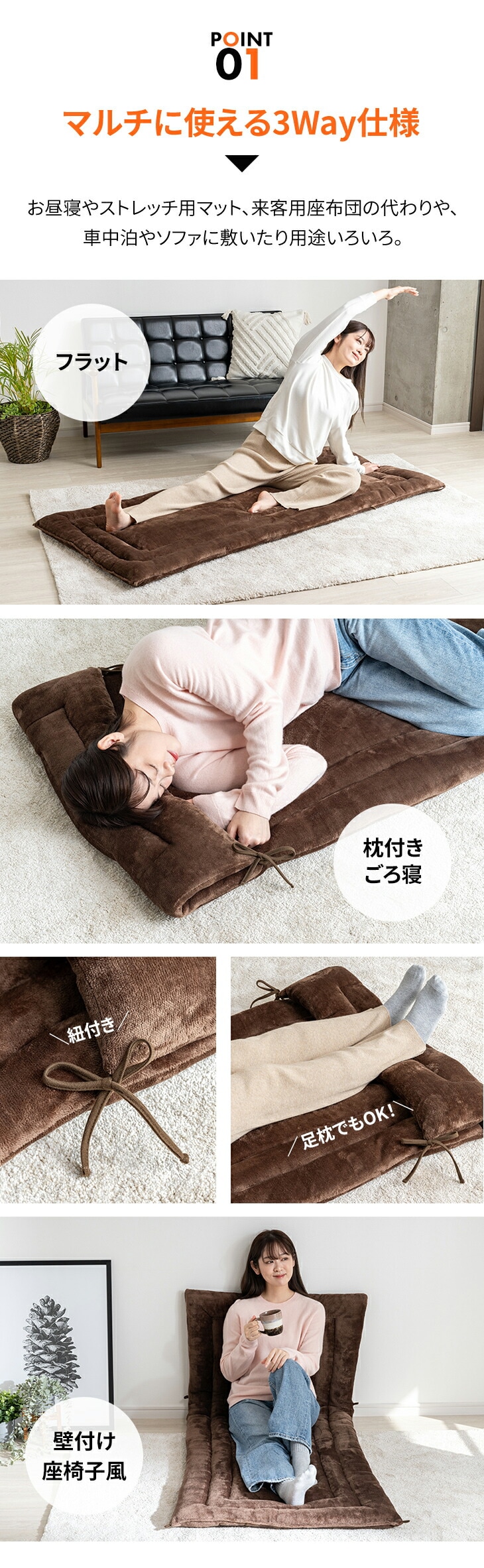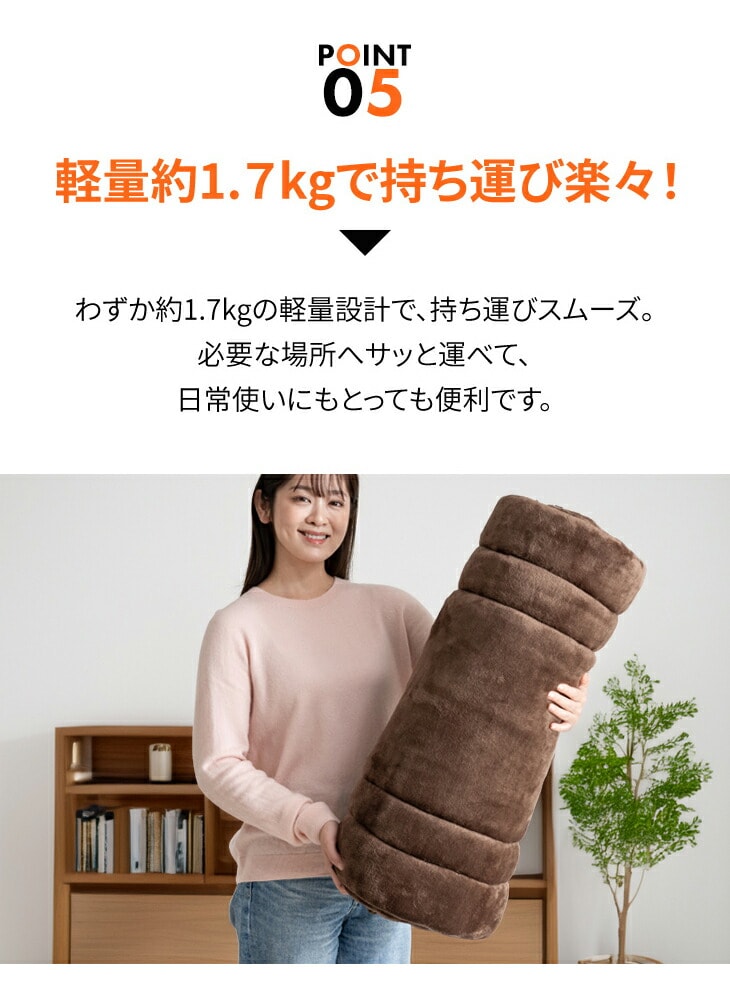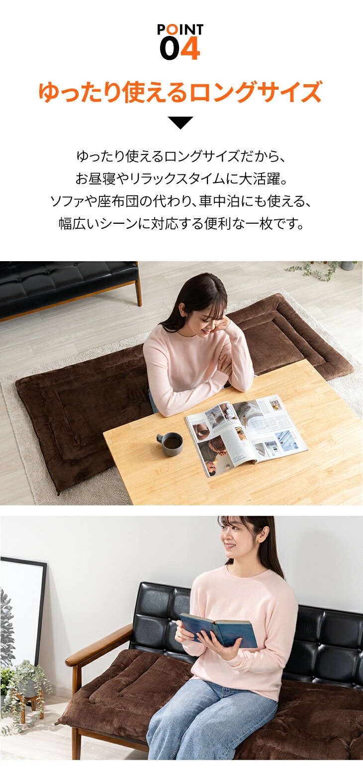お昼寝・一時的な布団代わりに…リビングや和室でのお昼寝、リラックスしたい時のごろ寝布団として最適。冷えやすい床の上での底冷え対策にもおすすめです。