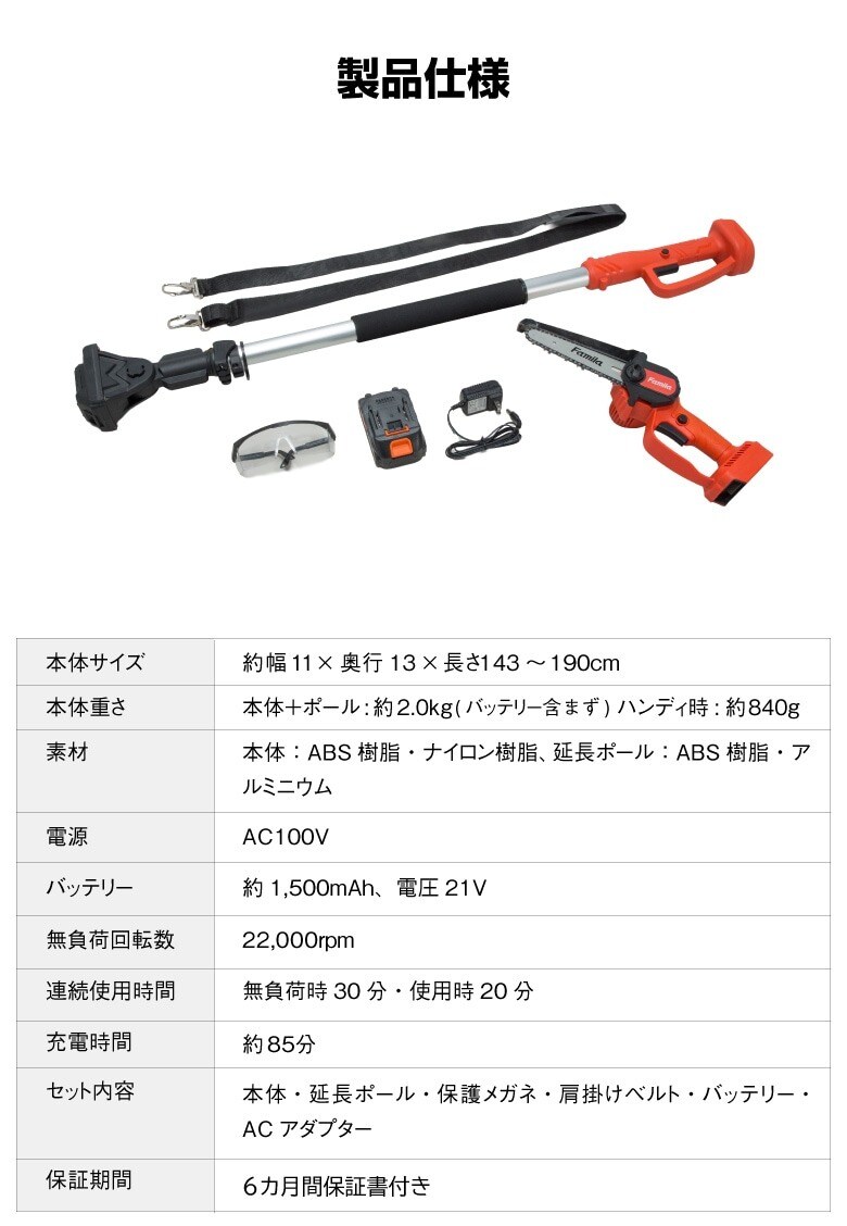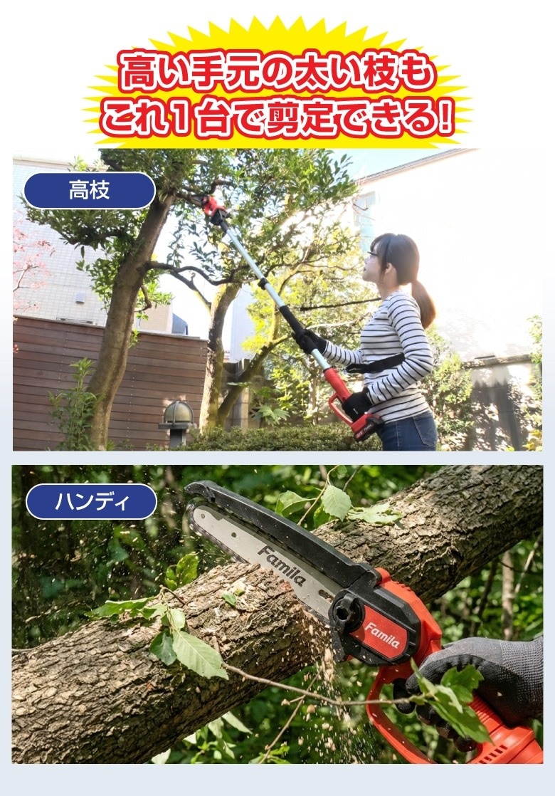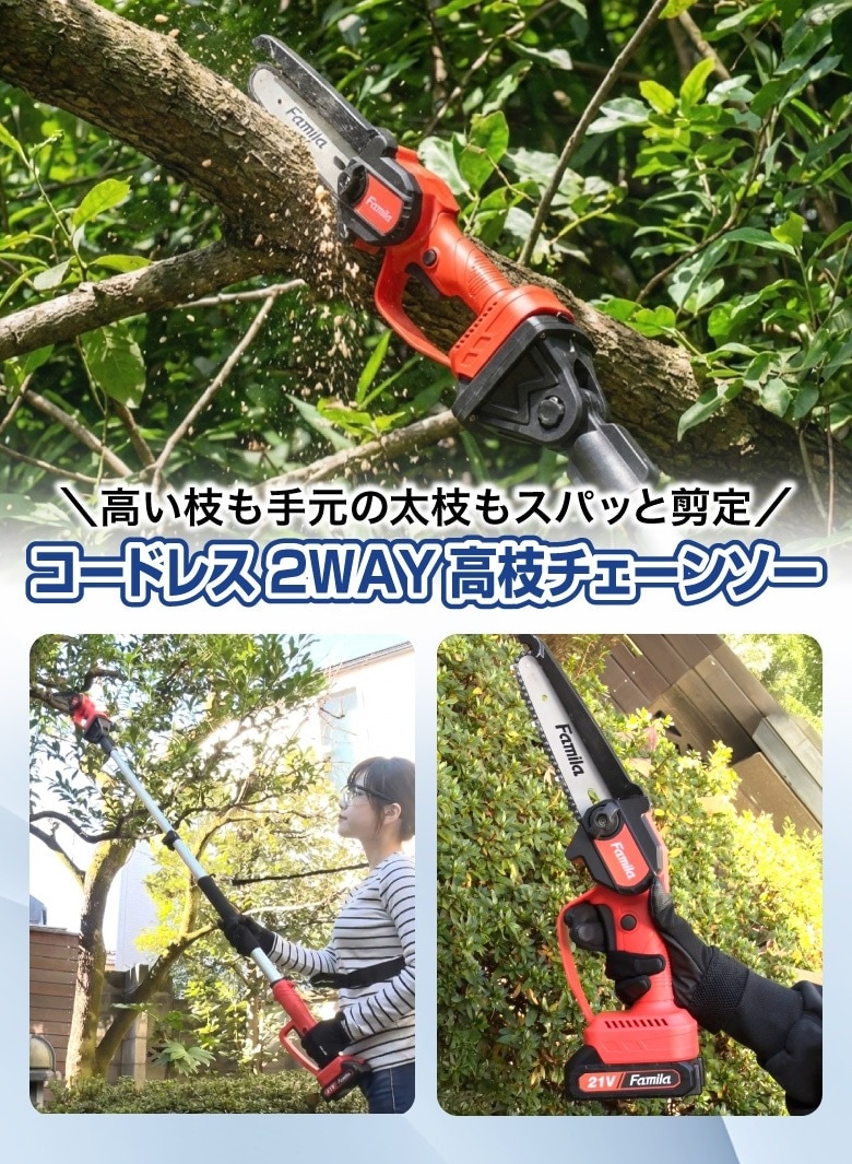 ファミラ 充電式コードレス2WAY高枝チェーンソー6点セット