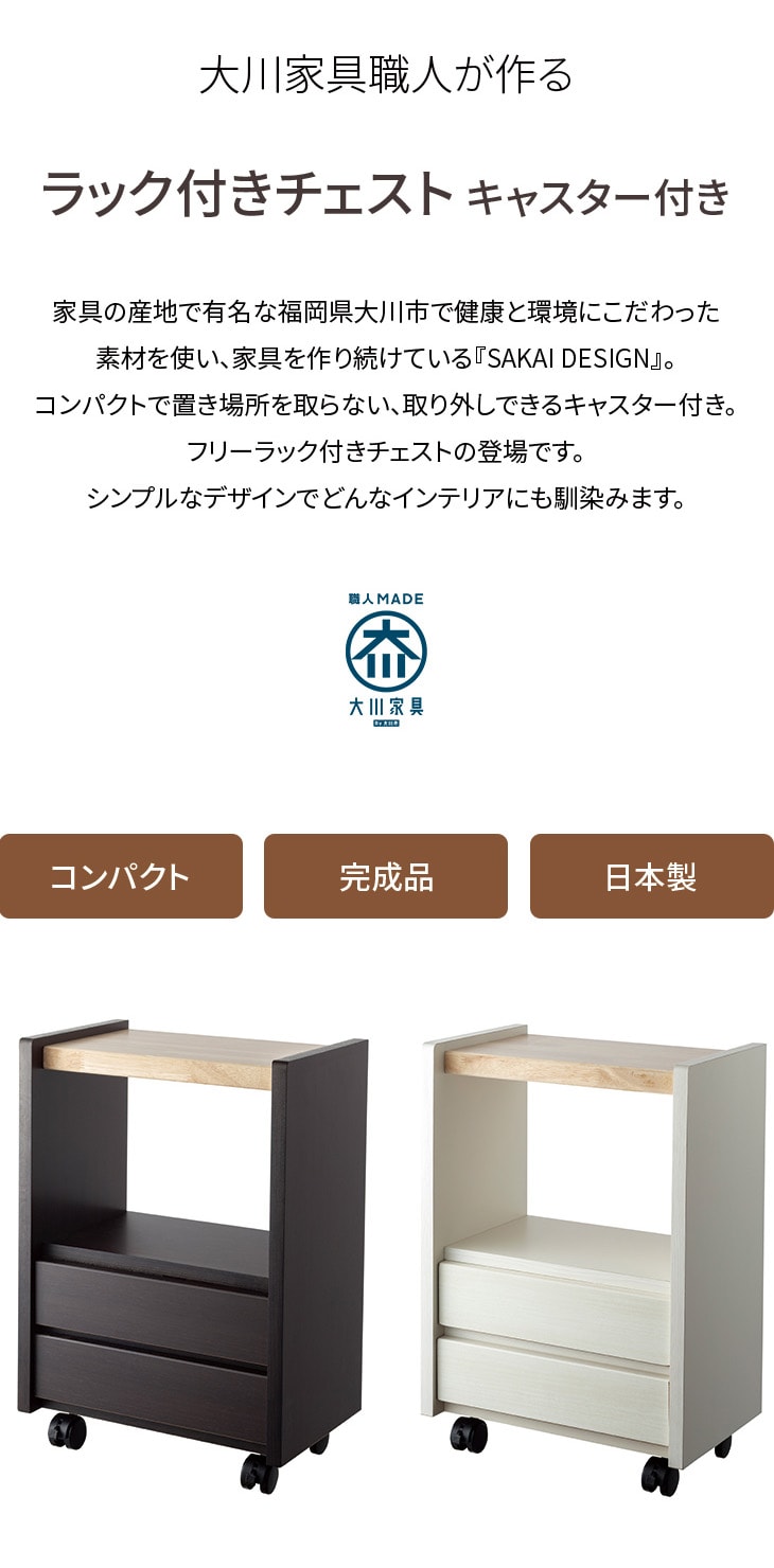 サカイデザイン 職人が作るラック付きチェスト キャスター付き 大川家具 日本製 完成品