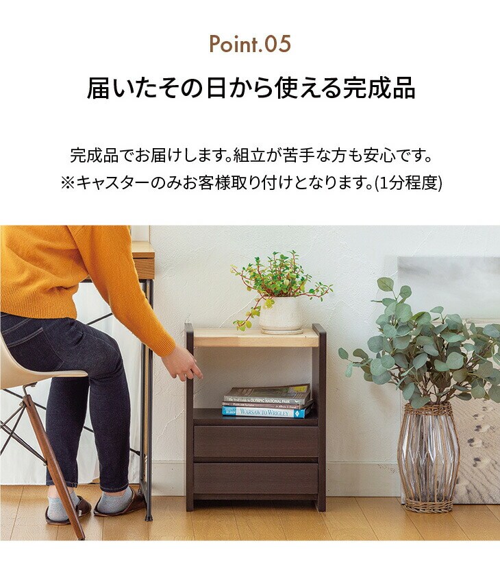 ●サイズ/約幅39×奥行き24×高さ55cm(キャスター含む)、引き出し内寸:約幅32×奥行き20×高さ6.5cm、オープンスペース内寸:約幅34.5×奥行き21.5×高さ23cm