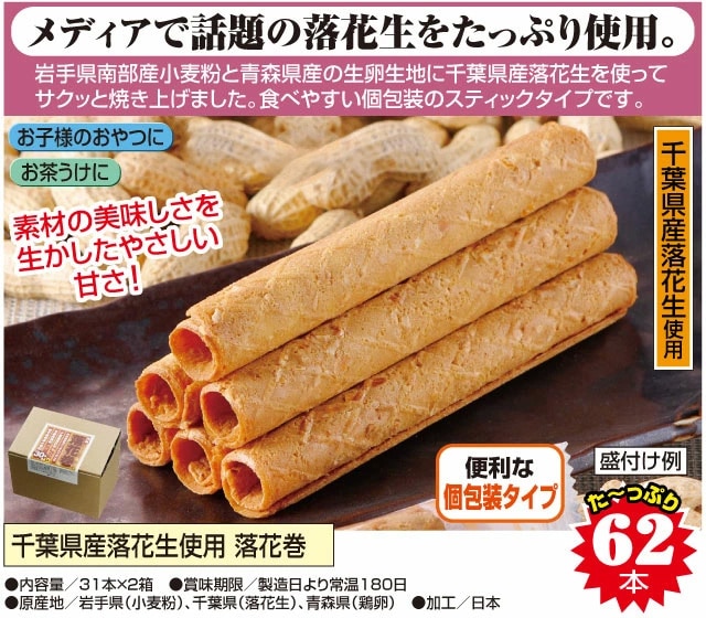 千葉県産落花生使用 落花巻 31本×2箱 千葉県産落花生 落花生国産 千葉 国産 落花生 焼菓子 おやつ お菓子