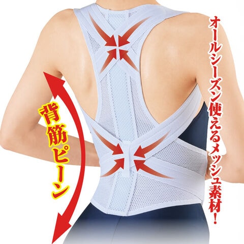 乗馬の正しい姿勢を背筋ベルトに!男女兼用タイプ。オールシーズン使えるメッシュ素材!正しい姿勢を可能にしたのは、肩甲骨クロス(胸を広げる)・腰クロス(背筋・腰を伸ばし支える)・約40cmロングボーン(背骨安定)の3つの構造です。着用するだけで背筋が伸びて猫背がスッキリします。胸を広げ、腰を伸ばします。
