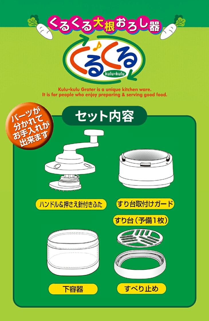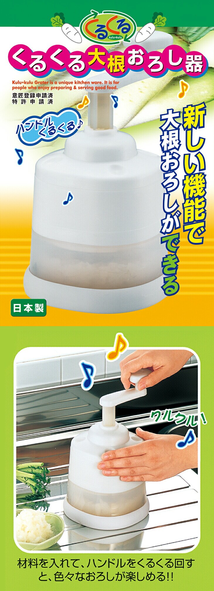 くるくる 大根おろし器 楽におろせる 力がいらない ハンドル 回転 手動 時短料理 日本製