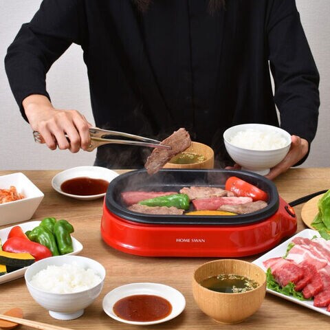 食べきりサイズのスモールホットプレート。1~2人に最適な大きさでちょっと使いにピッタリです。おおよそA4サイズで場所を取りません。操作はON、OFFスイッチの簡単操作。調理をしながらアツアツを召し上がれ。