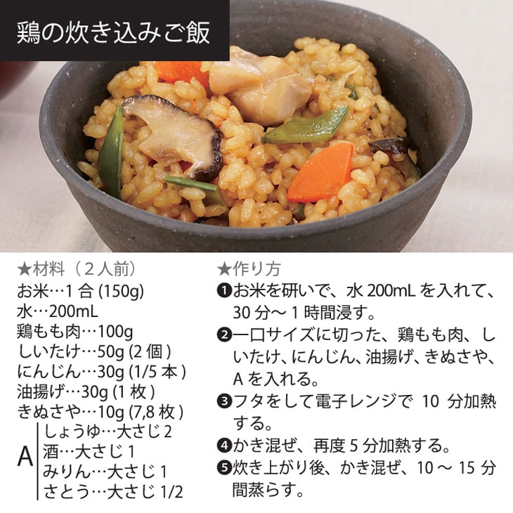 忙しい日も、もう諦めない!電子レンジでパパッと、美味しい炊きたてご飯。電子レンジ専用のガラス製ご飯メーカーです!簡単調理、スイッチなし!電子レンジで約10分(※吸水・蒸らし時間は含みません)加熱するだけで、美味しいご飯が炊き上がります。火を使わないので、目を離しても安心です。白米も炊き込みご飯もOK!基本の白米はもちろん、お好みの具材で手軽に炊き込みご飯も楽しめます。中が見えるガラス製で調理中に中の様子が確認できるので、吹きこぼれの心配も少なく、安心です。独自の形状で吹きこぼれを抑制。フタも蒸気が抜けやすいように設計されています。各パーツがばらして洗えるので、いつでも清潔に保てます。 0.5合の計量カップが付属しているので、届いてすぐに使い始められます。