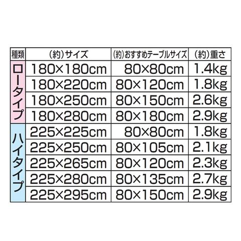 ●(約)おすすめテーブルサイズ/80×150cm