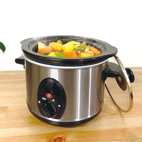 スロークッカーは沸騰しない程度の低温でゆっくりと食材を煮込む電気調理器です。時間をかけて加熱するので焦げ付きや煮崩れをおこしにくく、材料を入れてスイッチONするだけで誰でも簡単に本格的な煮込み料理が作れます。電気式で火を使わないので、 吹きこぼれや焦げ付きを気にして鍋の近くにいる必要はありません。スイッチを入れたら完成まで自由に時間が使えます。ロールキャベツ、肉じゃが、焼き芋など、 1台で様々な料理を作ることが可能です。調理レシピ付き。