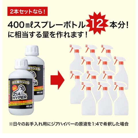 日本製 カビ取りジェル ジアハイパー 500ml 2本セット 強力 カビ取り 風呂 黒カビ 除去 黒カビ洗剤 カビ取り剤 カビ取りスプレー 特濃 ジェル 粘性 密着 洗浄