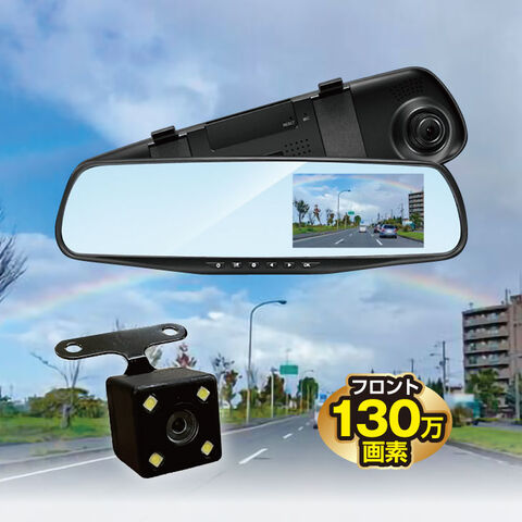 フロントカメラは130万画素で映像を記録。視認性の高いミラー型デザインで、運転中も邪魔にならずスッキリと取り付け可能。急な事故や緊急時に頼りになるアイテムです。