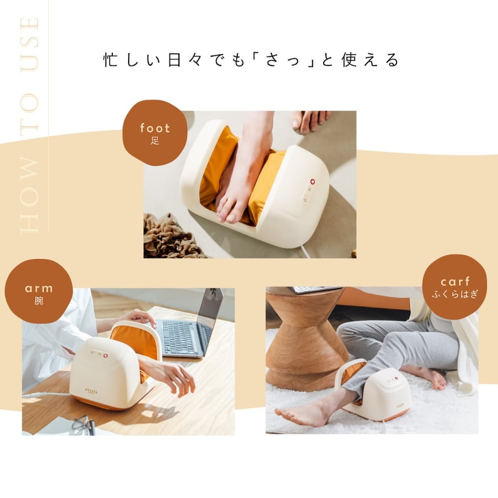 このコンパクトで使いやすいフットマッサージャーで日頃の足の疲れを癒しましょう。