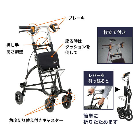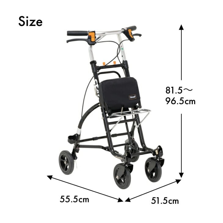 手押し高さ:81.5~96.5cm(7ポジション)、座面寸法:幅26×奥行23cm、ゴムロープ長さ:75cm、座面高:約47cm