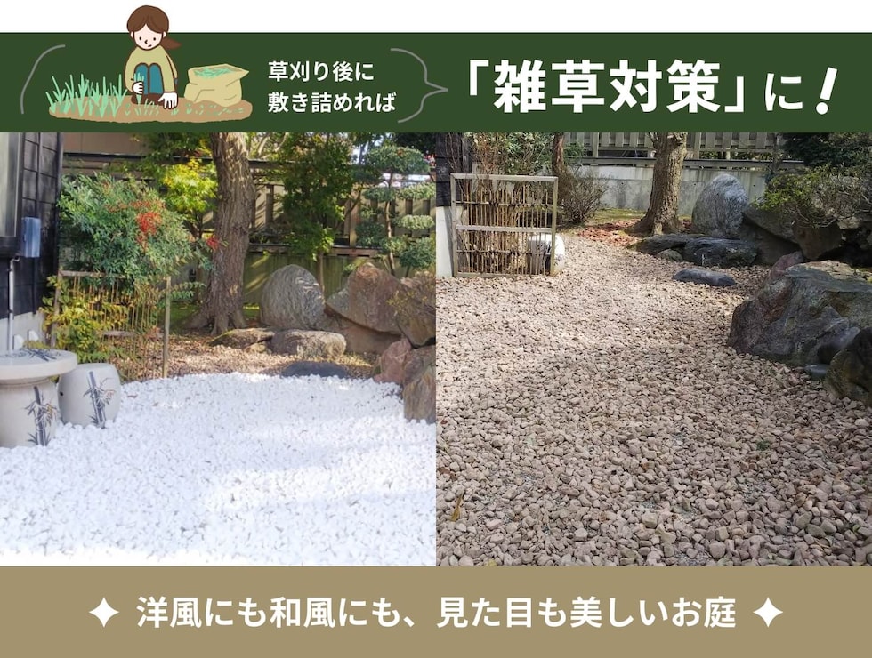 空き巣や不審者をシャットアウト! 通常の砂利よりも大きな音で、侵入者を威嚇する防犯砂利です。草刈り後の地面に敷き詰めれば、雑草の発生を長期間抑制!環境に優しいリサイクルガラスを使用しており、地球にも家計にも優しいエコな商品です。