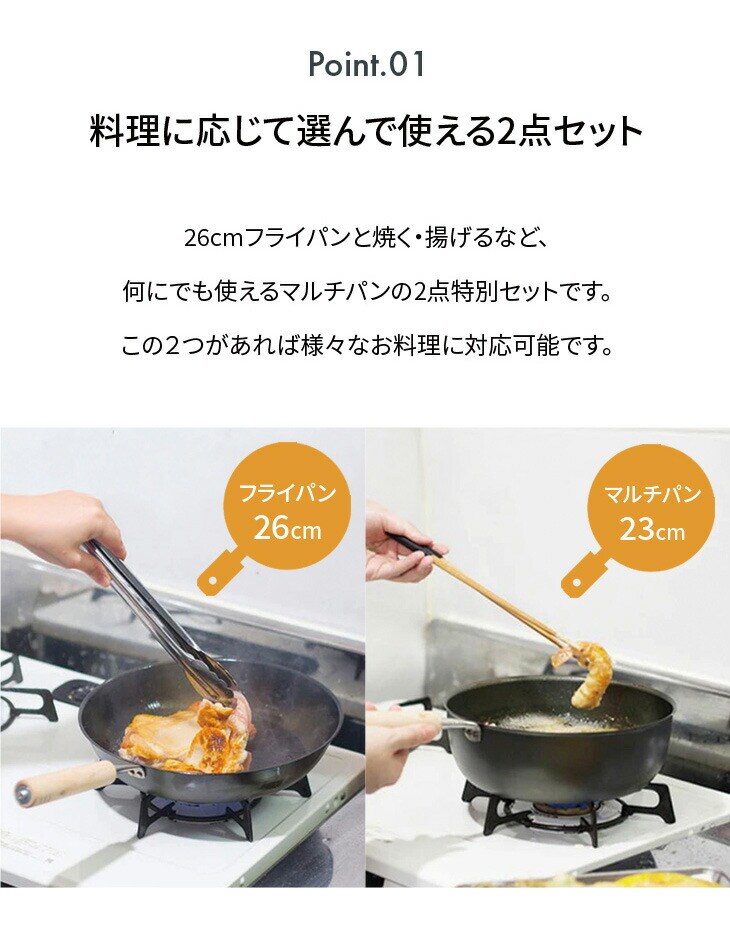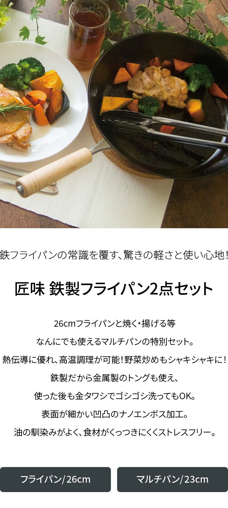 26cmフライパンと焼く・揚げる等なんにでも使えるマルチパンの特別セット。